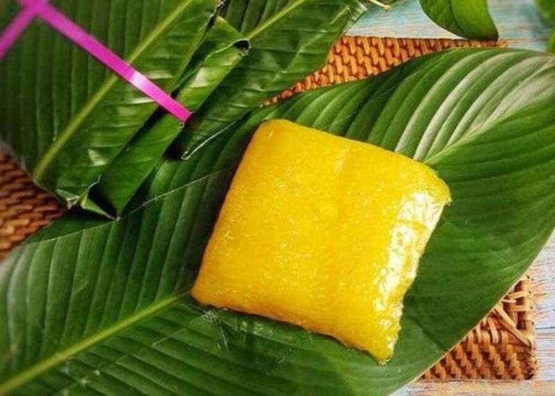 C'est la vedette de la cuisine de Bac Ninh. Enveloppé dans des feuilles de dong, ce gâteau a une texture gélatineuse et une couleur dorée naturelle (grâce au fruit du gardénia). À l'intérieur, vous découvrirez une farce sucrée à base de haricot mungo, de noix de coco râpée et de graines de lotus.