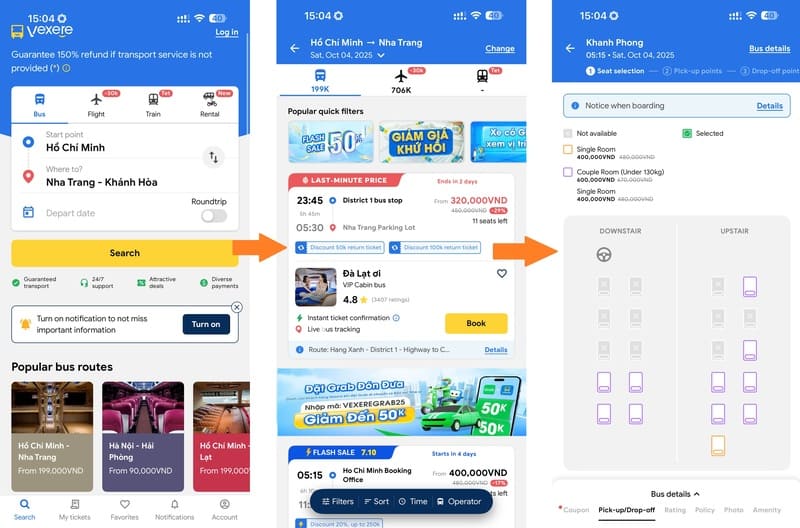 - En ligne via 12Go, Baolau ou Vexere : Ces plateformes vous permettent de comparer les itinéraires, les compagnies et les classes de bus. C’est le moyen le plus simple et rapide pour réserver.