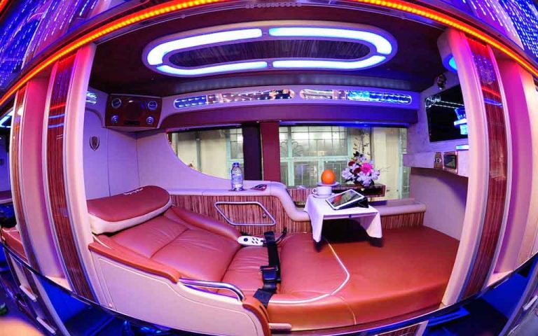 Bus VIP : Ces bus offrent plus d’espace avec moins de couchettes (généralement 22 cabines), des équipements comme la climatisation, un écran personnel et une meilleure intimité.