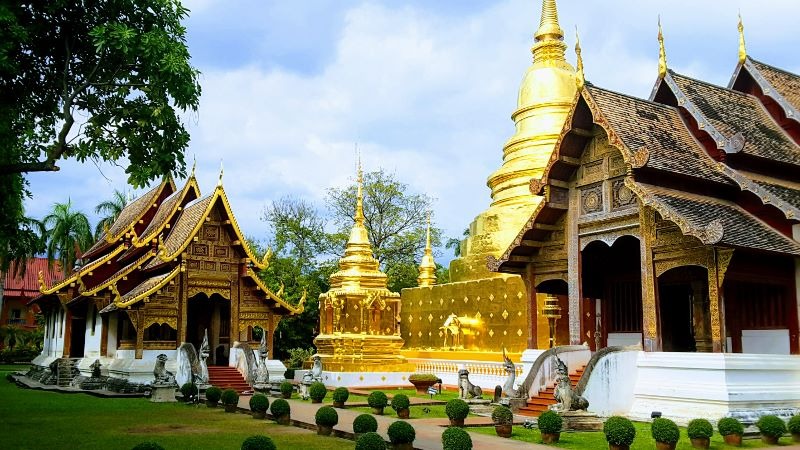 - Wat Phra Singh : C'est le temple le plus vénéré de la ville. Il est célèbre pour son architecture Lanna classique aux toits superposés et pour abriter le Phra Singh (le Bouddha Lion), une statue très sacrée. Les peintures murales à l'intérieur de la chapelle racontent la vie locale du XIXe siècle avec un détail fascinant.