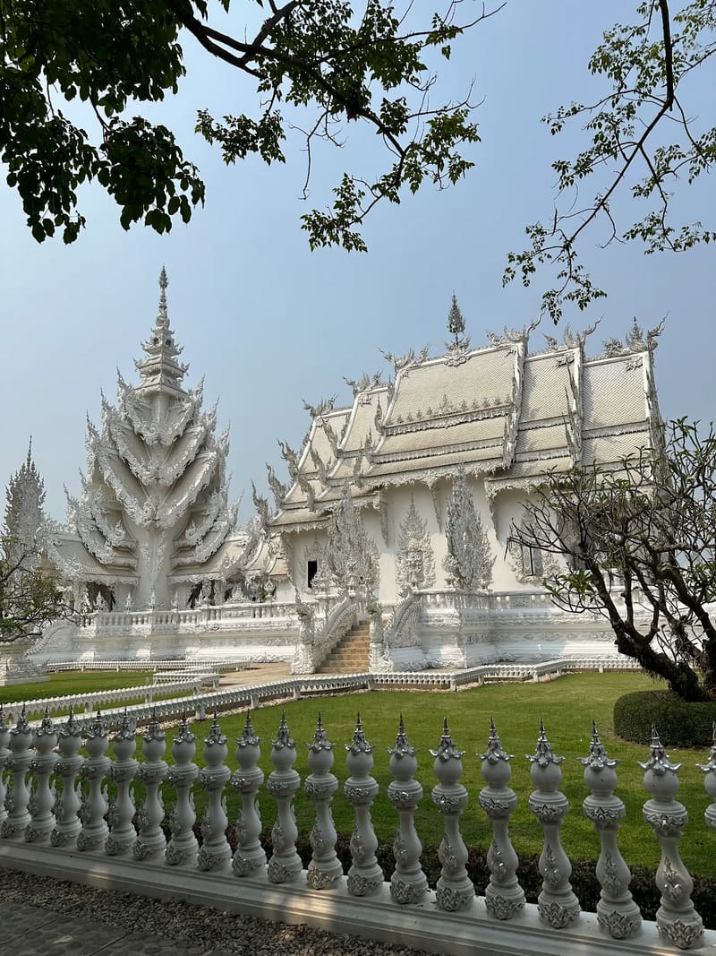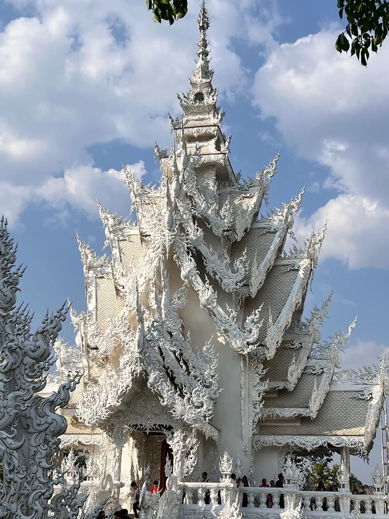 Aujourd’hui, le complexe s’étend sur plus de 8 hectares et comprend le hall principal, le pont Sukavadee, la salle du Bouddha, le reliquaire, la salle des cérémonies, une galerie d’art, ainsi que d’autres pavillons et infrastructures destinés aux visiteurs. Le Wat Rong Khun est devenu non seulement un lieu de culte mais aussi une destination culturelle incontournable, attirant des voyageurs du monde entier.