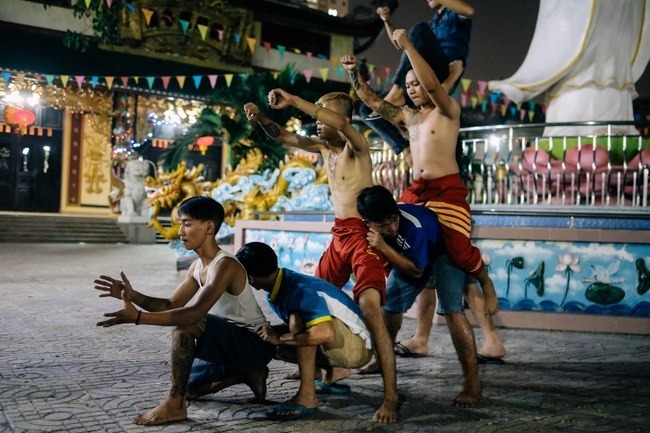 Une troupe de danse du lion fonctionne comme une famille, regroupant souvent 20 à 30 personnes. Il y a les tambours, les cymbales, les danseurs de la tête et de la queue du lion, et le joyeux Ông Địa. Ils mangent ensemble, répètent ensemble et passent des nuits blanches sur la route. Beaucoup parlent de « karma » plutôt que d’un simple métier. Ce qui les motive, ce n’est pas la rémunération, mais la camaraderie, les rires partagés en coulisses, la persévérance après une chute et la fierté lorsque le public applaudit.