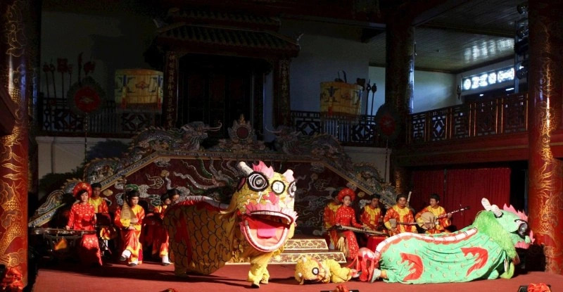 - Festival de Hué (tous les 2 ans) : on y retrouve souvent la reconstitution de la danse du lion royale