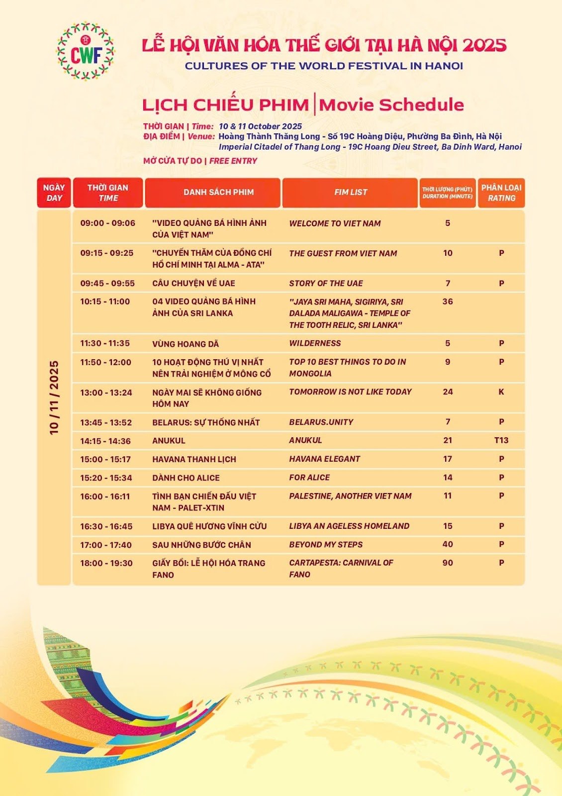 Organisé conjointement par le ministère de la Culture, des Sports et du Tourisme, le Comité populaire de la ville de Hanoï et le ministère des Affaires étrangères, le Festival culturel mondial de Hanoï 2025 s’affirme comme l’un des temps forts culturels de l’année, rassemblant les peuples du monde autour de la culture, du dialogue et de la paix.