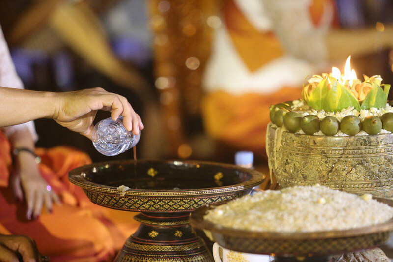 Les familles se réunissent pour faire des offrandes à la lune avec des fruits, des fleurs et le plat traditionnel Ak Ambok – du riz aplati souvent mélangé à de la banane et de la noix de coco – comme une manière de rendre grâce.