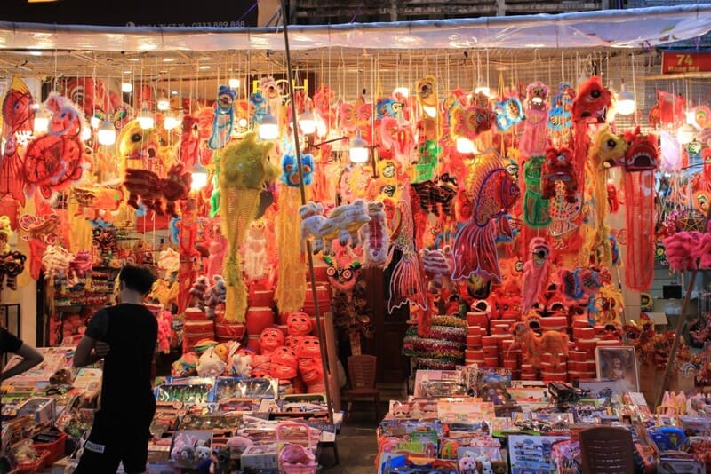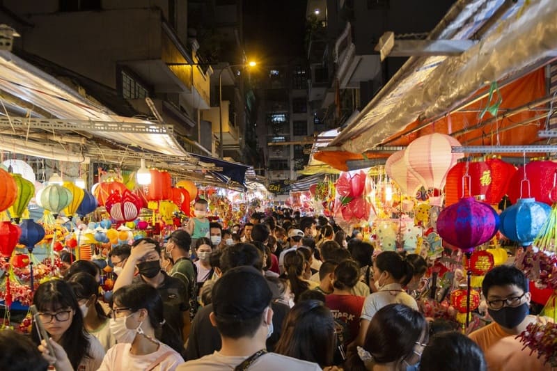 Ce qui frappe particulièrement les visiteurs, c’est l’ambiance festive qui commence des semaines à l’avance, notamment le long de la rue Hàng Mã à Hanoï, où les boutiques brillent de lanternes colorées.