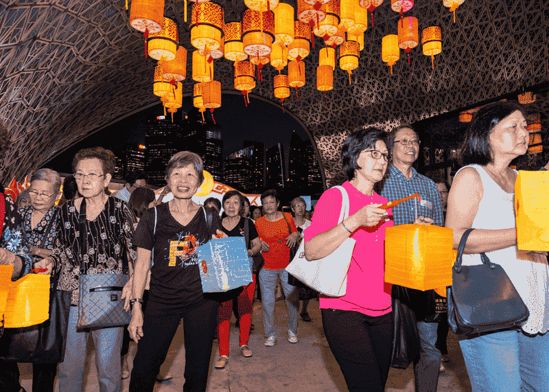 Environ trois quarts de la population de Singapour est d’origine chinoise, de sorte que de nombreuses coutumes et traditions de la Fête de la Mi-Automne venues de Chine y sont encore préservées.