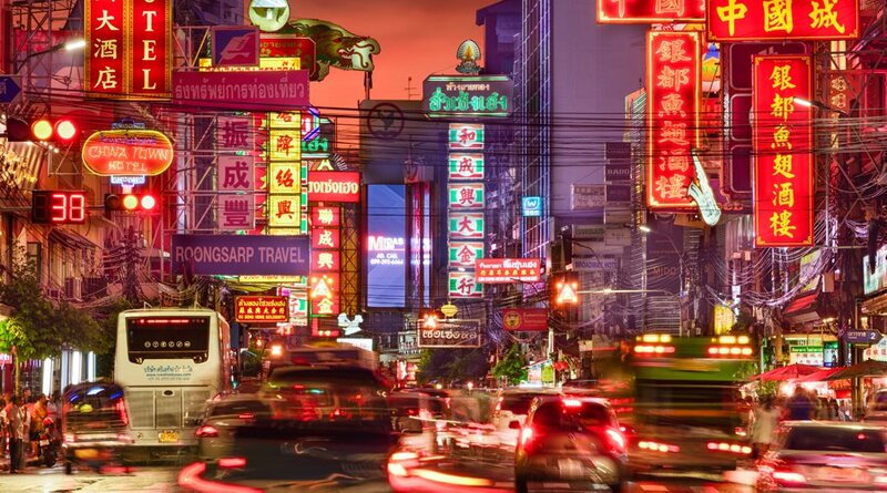 À Yaowarat, le plus grand Chinatown de Bangkok, les rues s’illuminent de milliers de lanternes rouges scintillantes, résonnent des tambours des danses du lion et vibrent de l’énergie débordante du marché nocturne.
