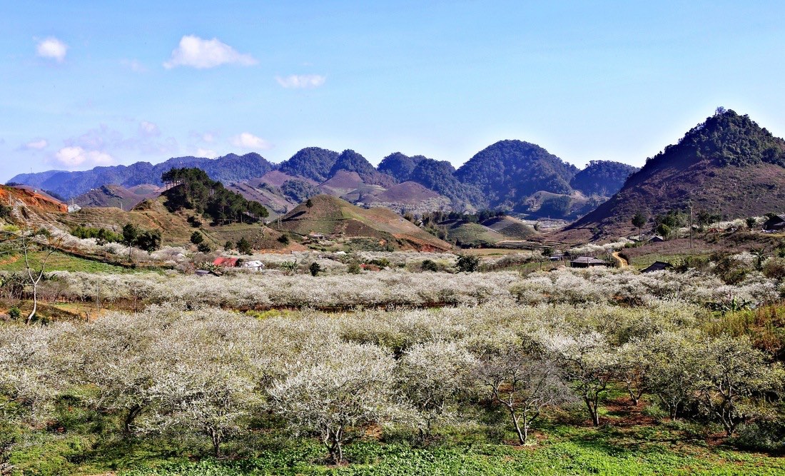 Dès la fin de décembre, une toile blanche recouvre les collines et les vallées de Moc Chau. La floraison des pruniers transforme la région en un tableau naturel époustouflant, attirant chaque année des milliers de visiteurs en quête de pureté.