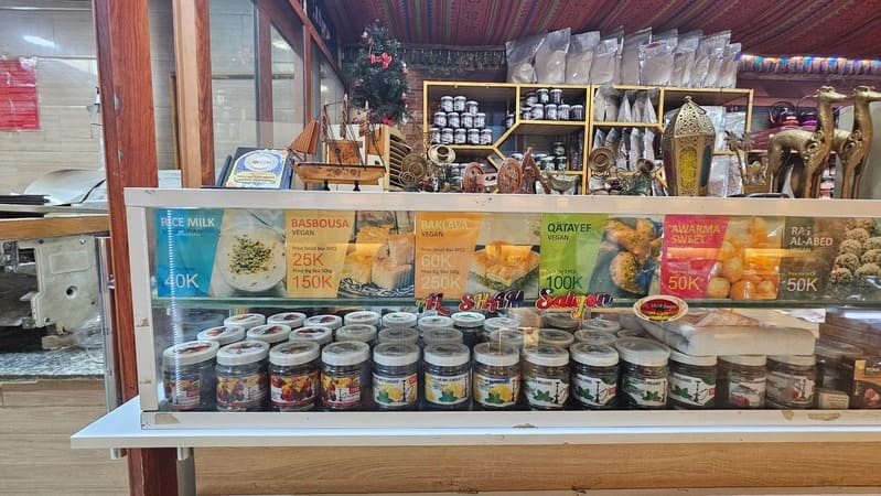 Un point original : le restaurant dispose d’un petit espace “mini-supermarché” vendant épices et ingrédients arabes, pratique pour emporter chez soi.