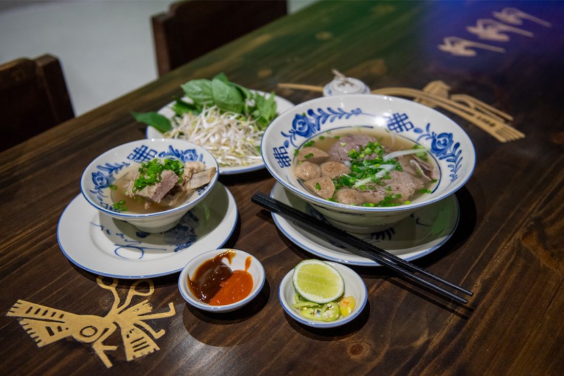 Le bol proposé se compose de nouilles de riz, bœuf saignant, poitrine, flanchet, tendon, boulettes, accompagné d’un petit bol de côtes - une version généreuse, fidèle au style du Sud, actuellement mise à l’honneur au musée.