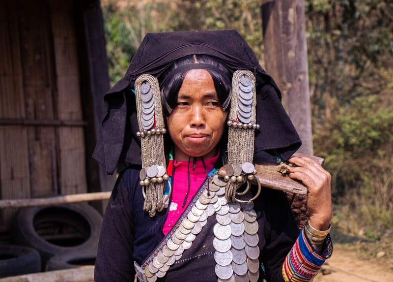 C’est l’expérience la plus marquante. Vous partirez à la découverte de villages isolés des ethnies Akha (groupes Oma ou Pusang), avec leurs maisons basses sur pilotis et, surtout, leurs costumes traditionnels spectaculaires. Les femmes portent des coiffes ornées de lourdes pièces d’argent françaises (piastres) et de broderies complexes, qu’elles conservent même pour travailler aux champs. En dormant chez l'habitant (Homestay), vous partagez les repas et découvrez un mode de vie animiste rythmé par la nature.