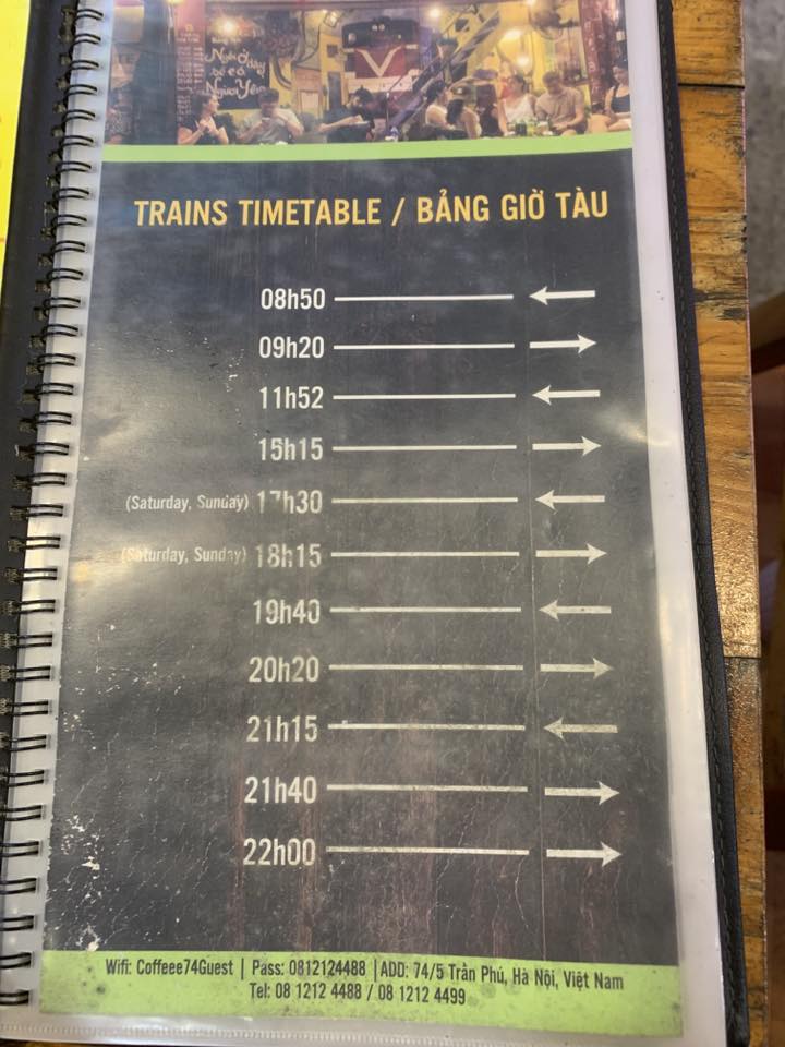 Dans les rues Tran Phu et Phung Hung, plusieurs trains passent chaque jour. Cependant, pour avoir les meilleures chances de voir un train passer, privilégiez les horaires suivants :