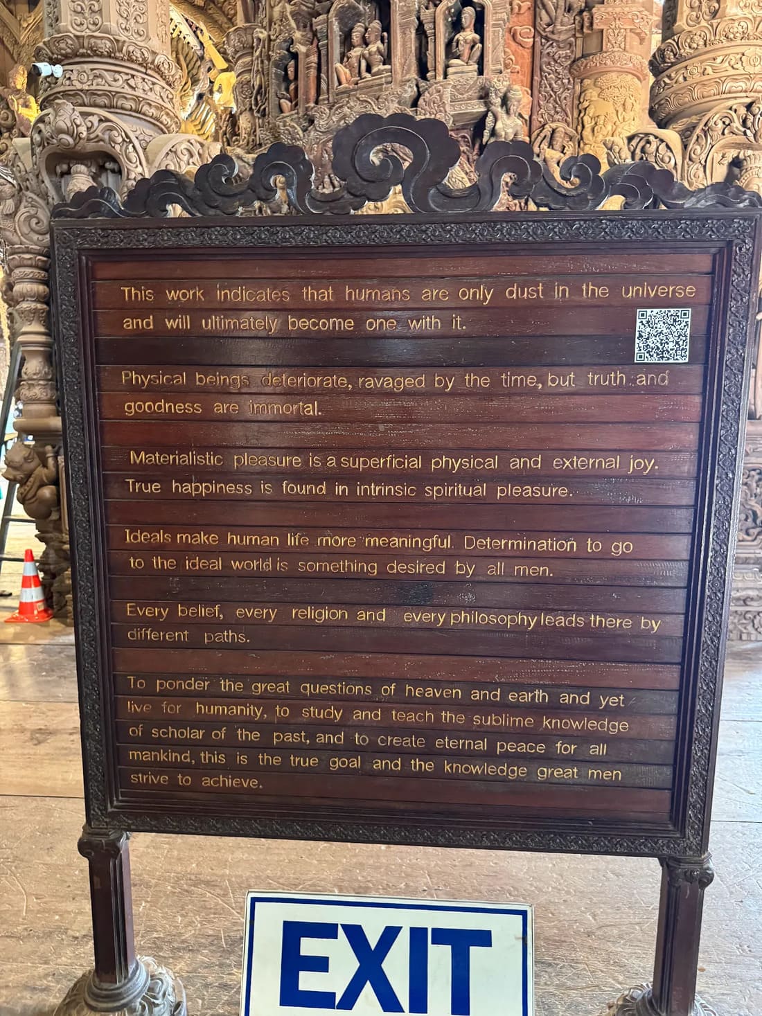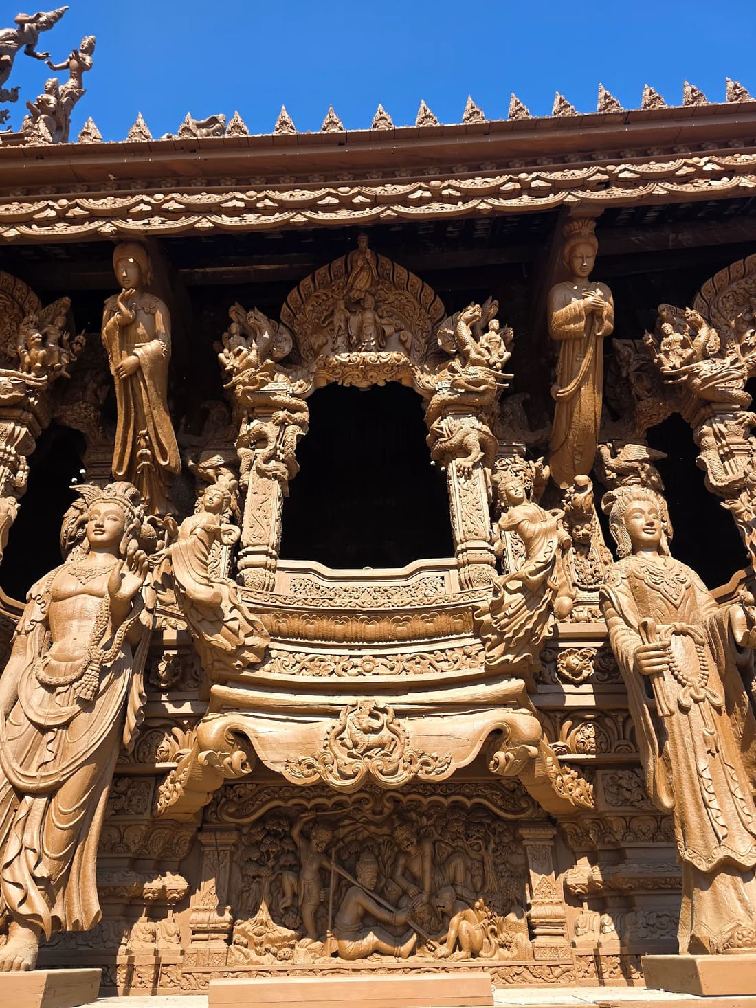 Le Sanctuaire de la Vérité ne parle pas de religion mais d’humanité. Il pose des questions simples sur la raison d’exister, le sens de la vie et la manière de vivre ensemble. À travers des milliers de sculptures en bois, il propose une réponse silencieuse mais universelle. C’est probablement l’un des souvenirs les plus marquants que l’on puisse rapporter de Pattaya.