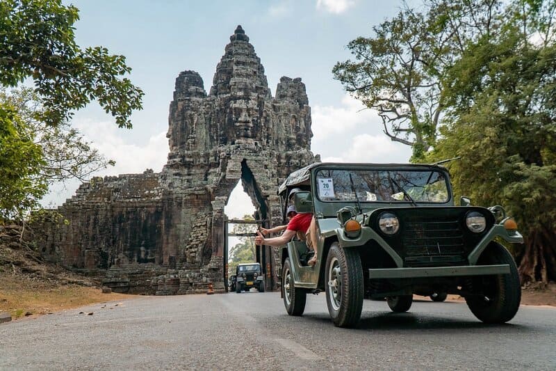 Cette excursion vous propose de vivre Angkor autrement : à bord d’une Jeep militaire d’époque, décapotable, vous traversez des paysages ruraux pittoresques, accédez à des temples cachés et profitez d’un sentiment de liberté tout au long du parcours. C’est une manière authentique et immersive de visiter ce site emblématique tout en ajoutant une touche d’aventure vintage à votre journée.