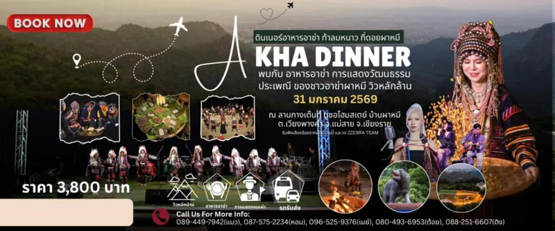 Dans l’air frais des montagnes du nord de la Thaïlande, ce dîner intimiste Akha associe cuisine traditionnelle, musique live et performances culturelles dans un décor hivernal enchanteur. Le cadre extérieur invite à savourer les spécialités locales tout en s’imprégnant du rythme de vie des hautes terres.