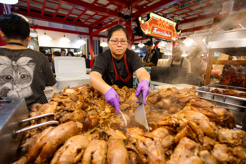 Démonstrations culinaires de chefs célèbres, dégustations gratuites et animations légères créent une ambiance gourmande et conviviale, idéale lors d’un séjour à Chiang Mai.