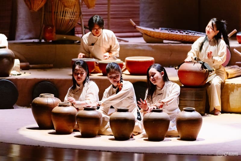 La particularité de GOm Show réside dans ses sonorités d’inspiration autochtone, nées de la rencontre entre la céramique, le bambou et les traditions musicales de plusieurs communautés ethniques comme les M’nông, Lô Lô, Hà Nhì ou Ê Đê. Les instruments utilisés sont des pièces uniques, fabriquées à la main par le collectif Đàn Đó, dont les artistes consacrent depuis près de quinze ans leur travail à collecter et à faire résonner les identités locales à travers le son.