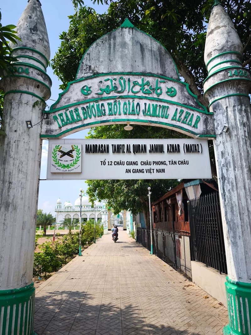 Située dans le village cham de Chau Giang, près de Chau Doc, la mosquée Jamiul Azhar est l’un des lieux de culte musulmans les plus importants de la province d’An Giang. Elle occupe une place centrale dans la vie de la communauté cham locale, installée depuis plusieurs générations le long du fleuve.