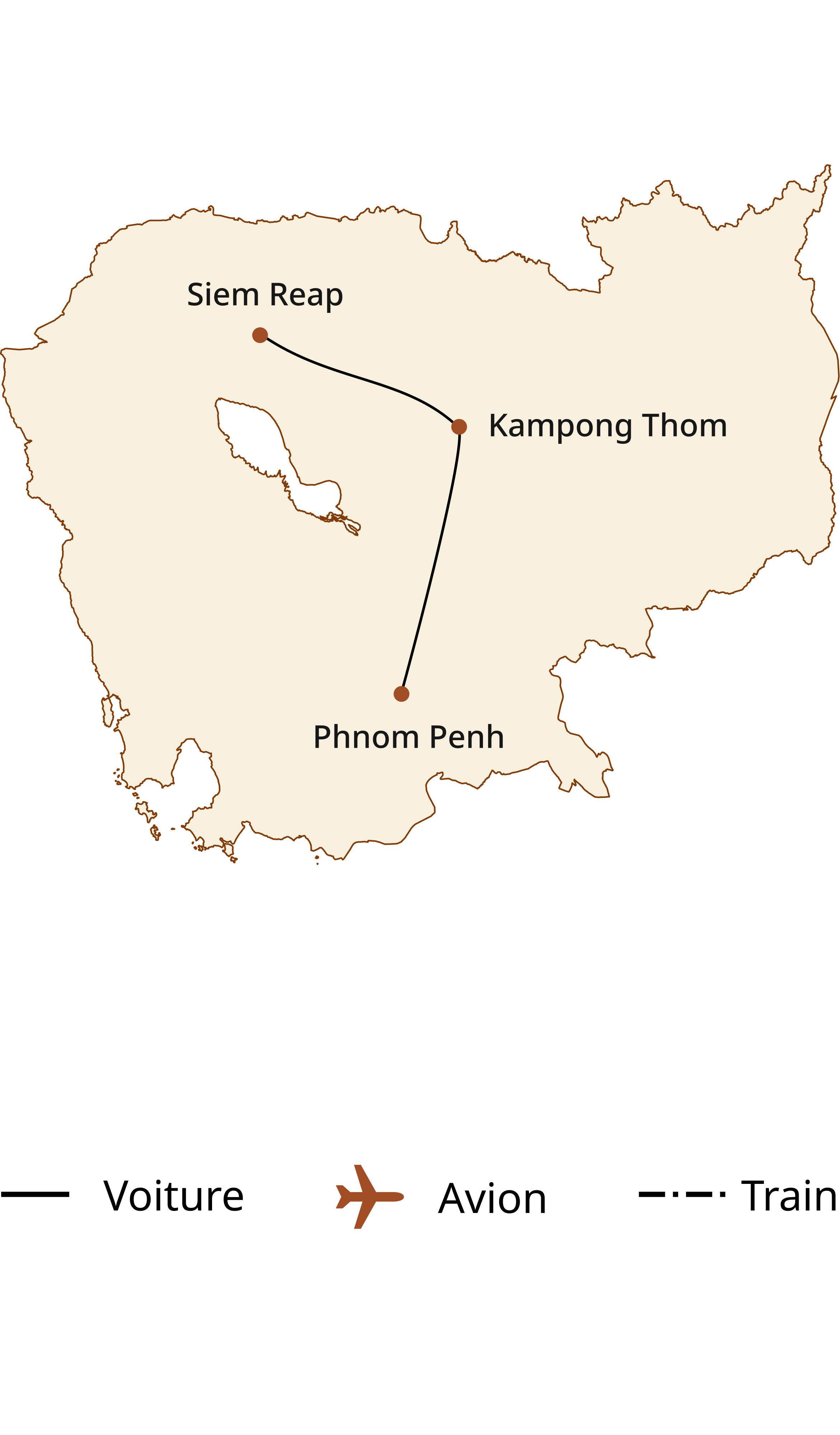 Siem Reap – Tonlé Sap – Kampong Thom (195 km ≈ 3.5 - 4 heures de route)