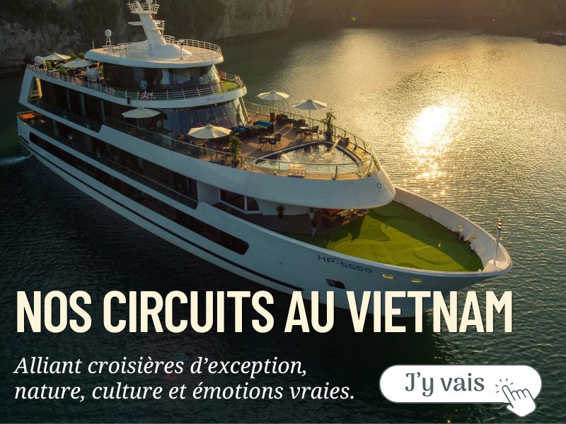 Heritage Cruises Binh Chuan : Une croisière "boutique" absolument unique, axée sur l'art et l'héritage culturel vietnamien de l'armateur Bach Thai Buoi. Le bateau lui-même est une galerie d'art flottante. L'ambiance y est plus intime et intellectuelle, avec une bibliothèque remplie de livres d'art, des expositions, et une gastronomie qui retrace l'histoire culinaire du Vietnam. C'est le choix des voyageurs cultivés qui cherchent plus qu'une simple croisière.