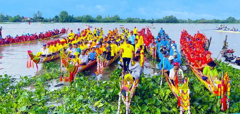 Dans le delta du Mékong, au sud du Vietnam, les fêtes de l’eau portent une forte empreinte cambodgienne. La proximité avec le Cambodge et la présence d’une importante communauté khmère, notamment à An Giang, favorisent un riche échange culturel. Le festival Ok Om Bok, célébré chaque année dans le delta, reprend plusieurs éléments du Bon Om Touk cambodgien, des courses de bateaux aux rituels dédiés à la lune.