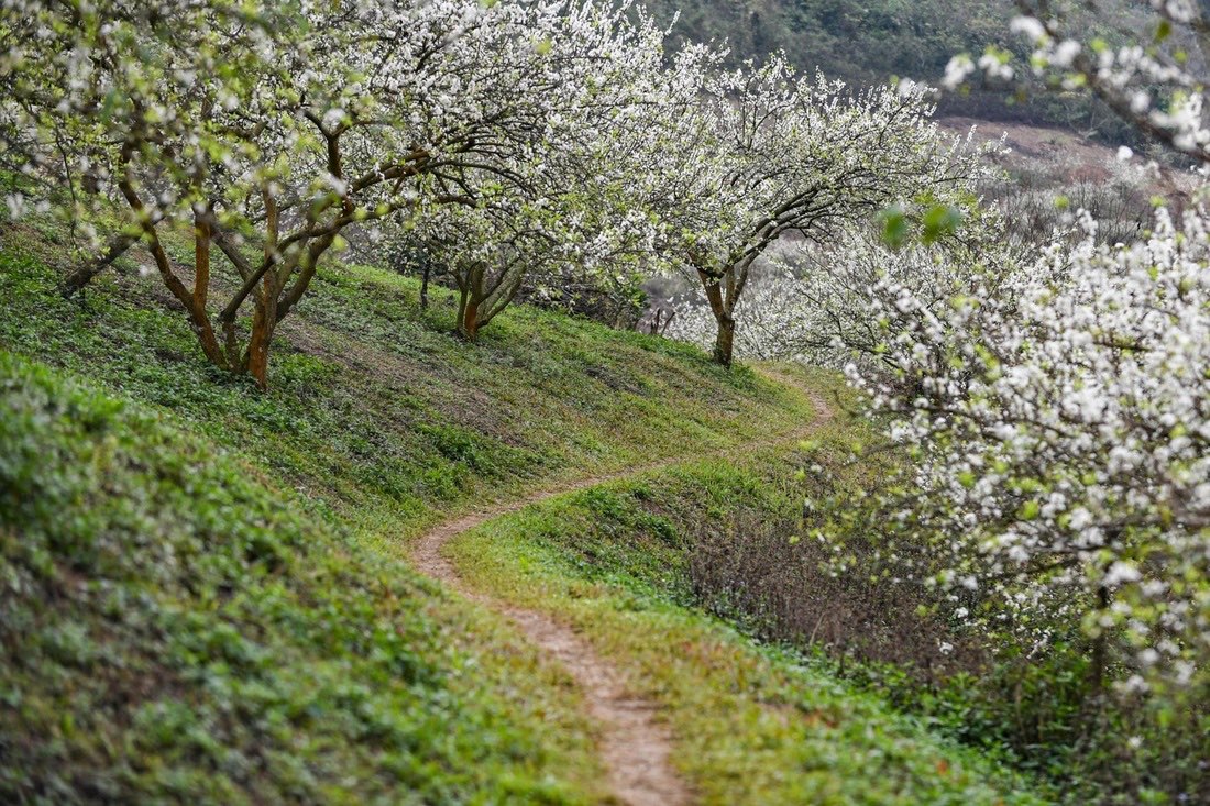 Dès la fin de décembre, une toile blanche recouvre les collines et les vallées de Moc Chau. La floraison des pruniers transforme la région en un tableau naturel époustouflant, attirant chaque année des milliers de visiteurs en quête de pureté.