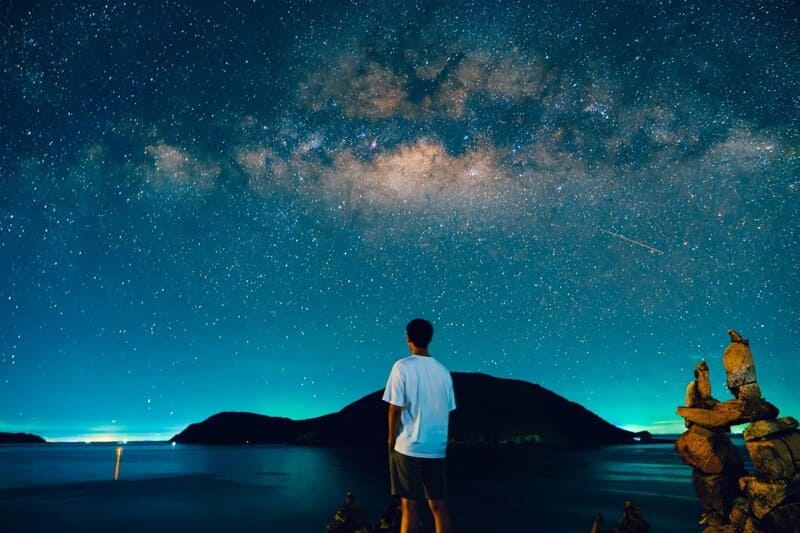 Bãi Nhát, avec son horizon dégagé et son absence presque totale de pollution lumineuse, est l'un des meilleurs endroits pour observer ce phénomène céleste à l'oeil nu. Plus au nord, Bãi Đầm Trầu, déjà réputée pour sa beauté sauvage, se fait encore plus romantique la nuit : la mer tranquille y miroite les étoiles comme si deux ciels parallèles se croisaient.