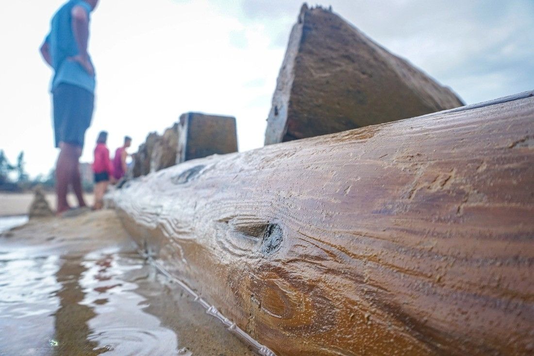 Après plusieurs mois de disparition, un navire ancien présumé naufragé a refait surface sur la plage de Hoi An, Da Nang, suite au passage du typhon Kalmaegi.