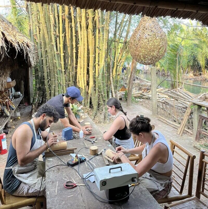- Matin : Visite du village de Van Lang et balade en bateau-panier dans la forêt de cocotiers de Bay Mau. Découverte des techniques de pêche traditionnelles et des ateliers d'artisanat à Taboo Bamboo, un atelier artisanal de bambou où vous pourrez exprimer votre créativité. Ou bien participez à un cours de cuisine dans le vieux quartier, qui inclut une visite du marché local et une immersion dans la vie locale.