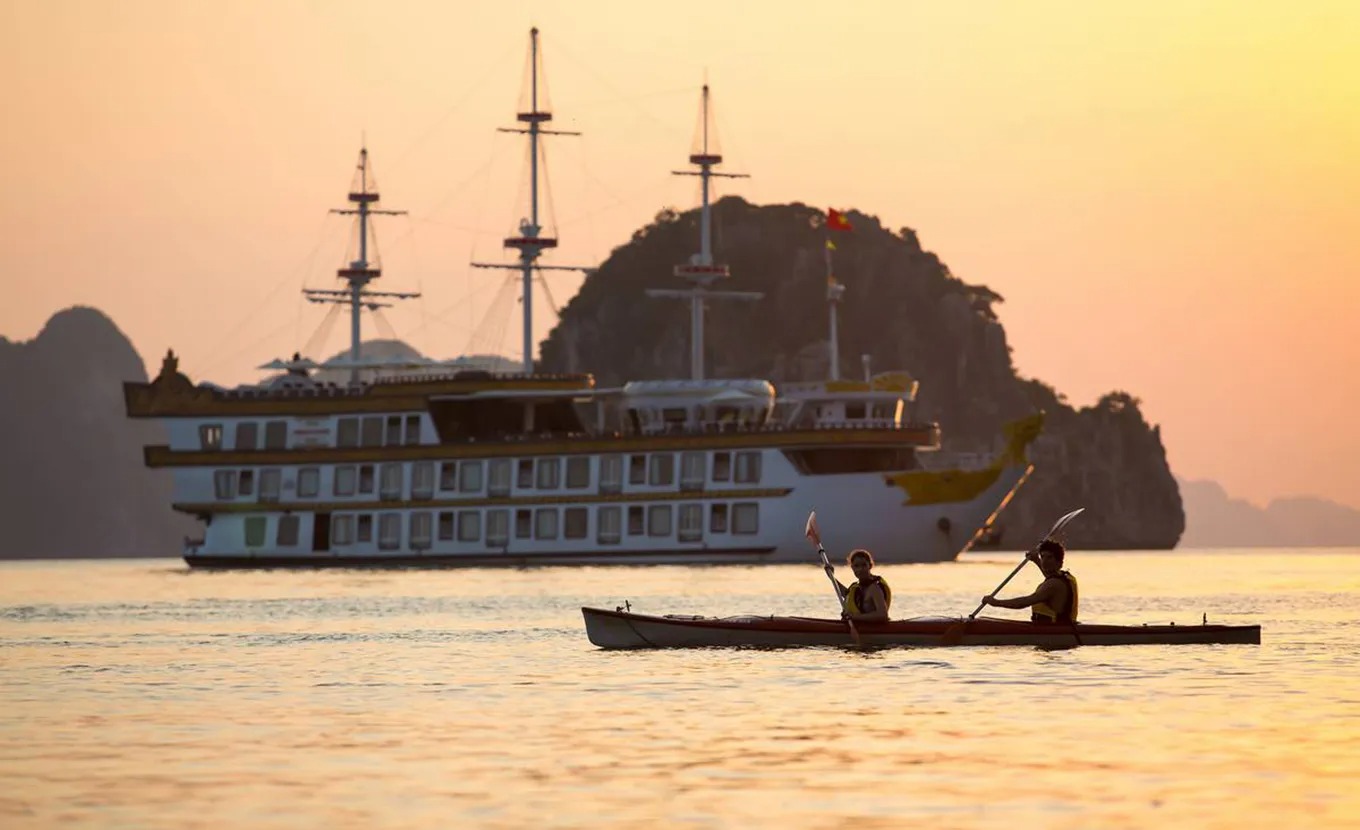 C'est la référence absolue dans la baie. Ce navire en acier au design indochinois offre des cabines spacieuses décorées avec des motifs culturels vietnamiens. L'itinéraire est unique et le service est digne d'un hôtel 5 étoiles. avec une piscine d'eau de mer sur le pont et des spectacles de marionnettes sur l'eau.