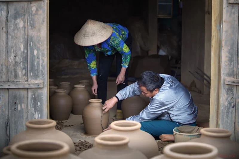 À une trentaine de kilomètres de Ninh Binh, le village de poterie Gia Thuy maintient un savoir-faire hérité depuis plus d'un demi-siècle. Ici, les artisans façonnent une terre argileuse particulière, sans émail, qu'ils cuisent au feu de bois pendant des jours. Le résultat : des jarres et des pots solides, à l'aspect brut, témoins de l'union de la terre et du feu. Une visite authentique pour observer la patience et la passion des potiers vietnamiens.