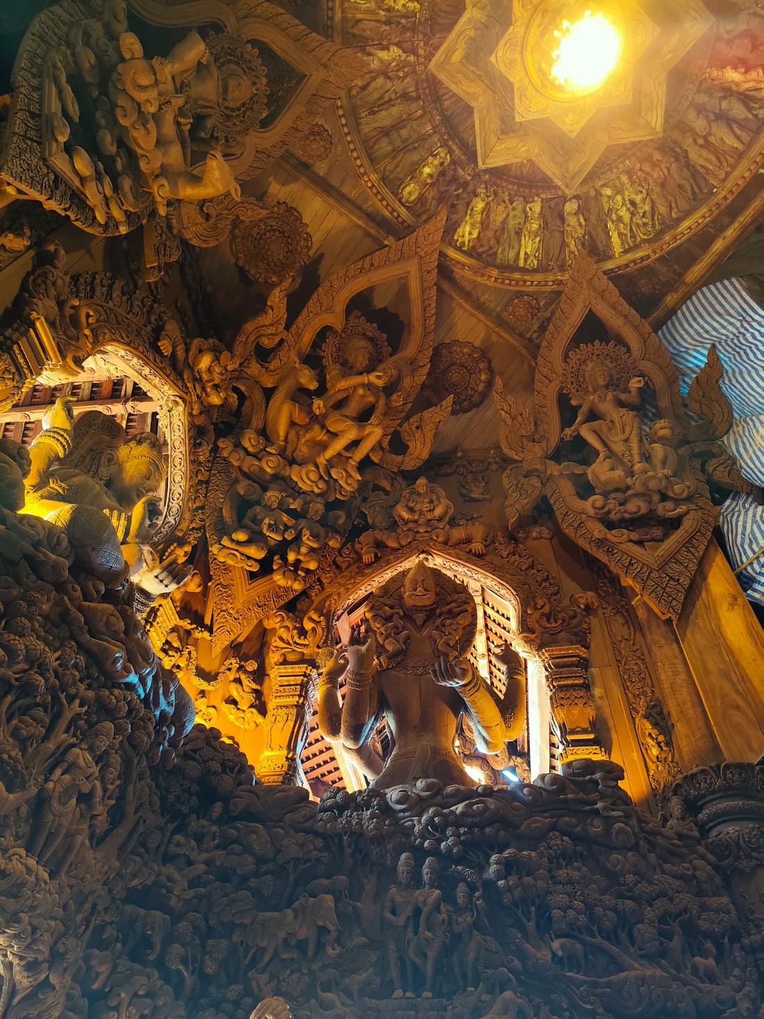 Le Sanctuaire de la Vérité ne parle pas de religion mais d’humanité. Il pose des questions simples sur la raison d’exister, le sens de la vie et la manière de vivre ensemble. À travers des milliers de sculptures en bois, il propose une réponse silencieuse mais universelle. C’est probablement l’un des souvenirs les plus marquants que l’on puisse rapporter de Pattaya.