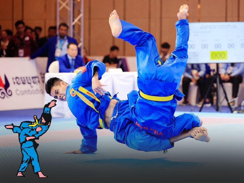 Les techniques de base comprennent les coups de poing et de pied, les projections, les clés articulaires et les célèbres ciseaux volants (đòn chân tấn công), mouvement emblématique du Vovinam. Ces techniques demandent coordination, souplesse et maîtrise du corps.