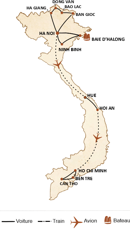 En 15 jours, vous pouvez découvrir les incontournables : Hanoï, Ha Long, Ninh Binh, Sapa, Huê, Hoi An, Hô Chi Minh-Ville et le delta du Mékong,... En 21 jours, prenez le temps d’explorer tout le pays à un rythme confortable, en combinant culture, nature et moments de détente balnéaire.